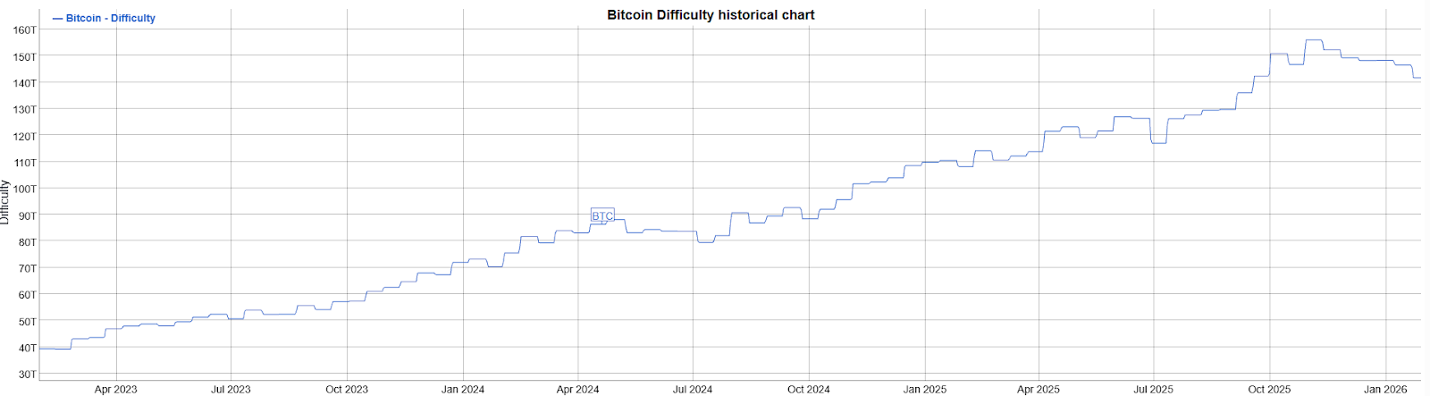 Однако в системе майнинга существует противовес - это сложность сети Биткоина. Если майнинг становится нерентабельным, часть оборудования отключается, а значит сложность падает: это происходит с ноября 2025 года. Зависимость майнингового дохода от сложности обратно пропорциональная.